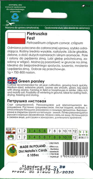 Nasiona pietruszki (Petroselinum crispum convar) 3 g. (0,105 uncji)
