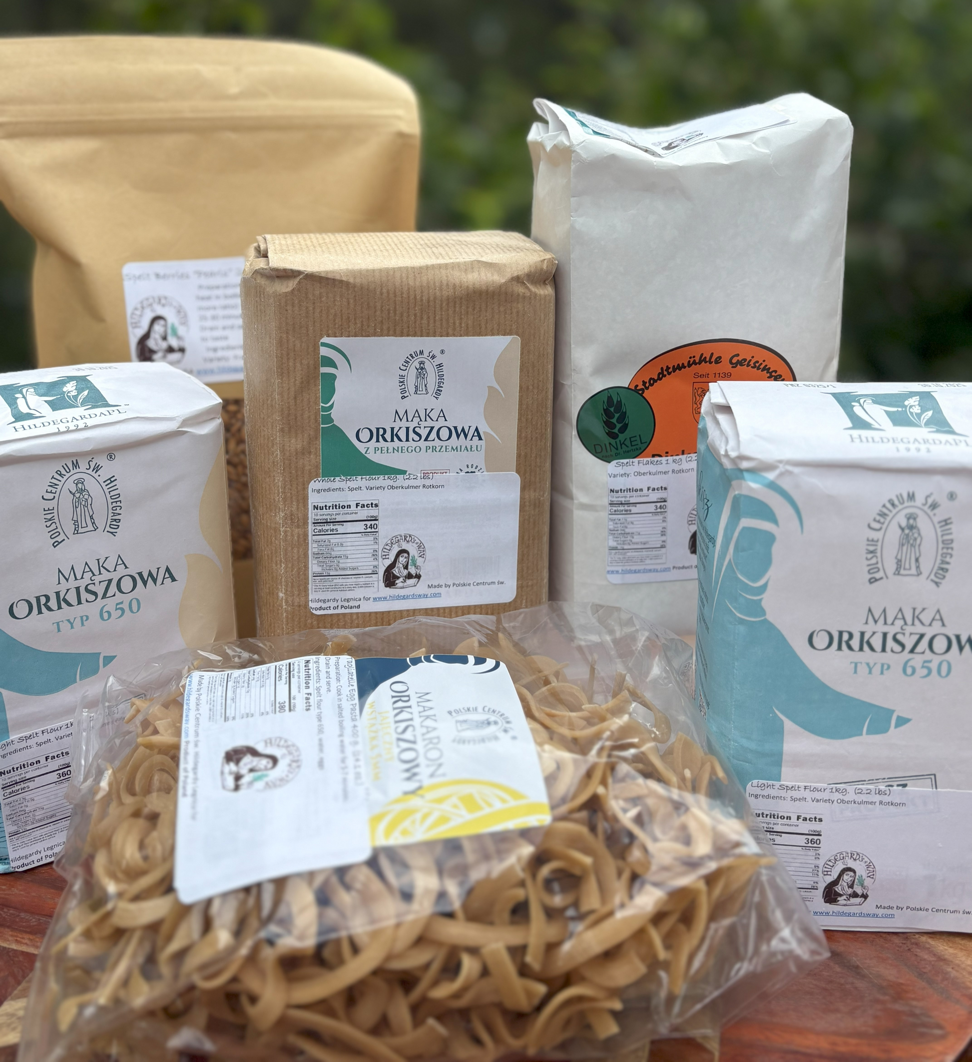 - Mąka orkiszowa jasna1 kg (2,2 funta) x 2 – uniwersalna, drobniej mielona mąka do codziennego użytku.