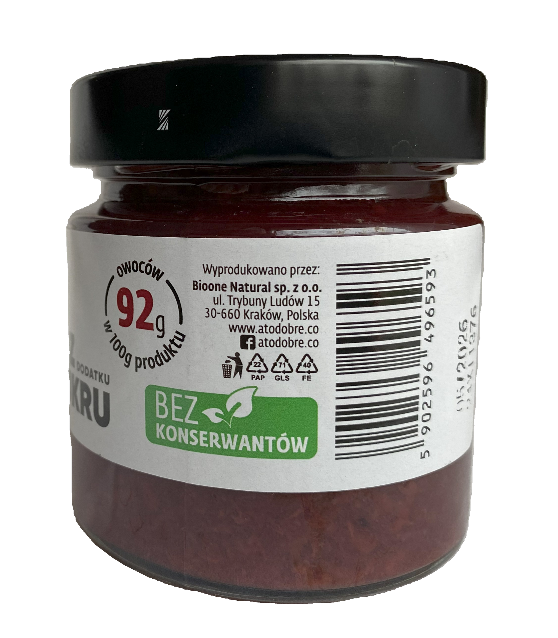 Składniki: Składniki: Wiśnie 67%, sok jabłkowy, pektyny. Zawiera wyłącznie naturalnie występujące cukry.